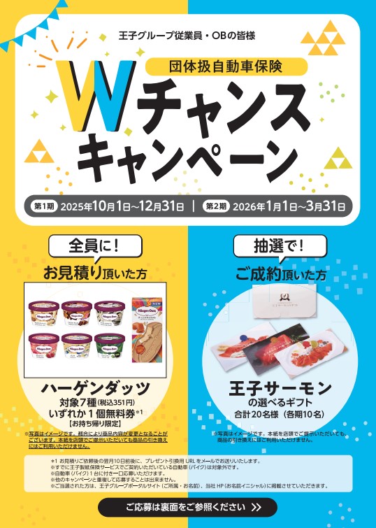 【ご案内】自動車保険 Wチャンスキャンペーン(2025年度)スタート!!